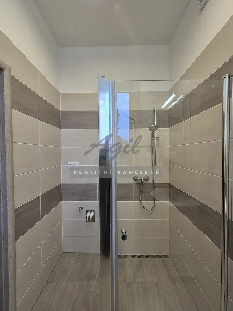 Koupelna – umyvadlo se spodní skříňkou, zrcadlová nástěnná skříňka s osvětlením, přípojka na pračku, otopný el.žebřík.