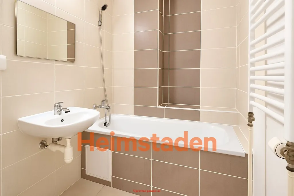 Koupelna prošla velmi zdařilou rekonstrukcí a je laděna do elegantních hnědo-béžových tónů. Nachází se zde vana i prostor pro pračku, což přispívá k maximálnímu pohodlí při každodenním užívání bytu. Toaleta je umístěna samostatně.