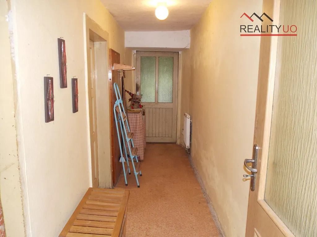 V přízemí domu se nachází veranda, 3 pokoje, kuchyně, koupelna, WC, chodba, skladovací místnosti, schodiště do sklepa, schůdky na půdu.