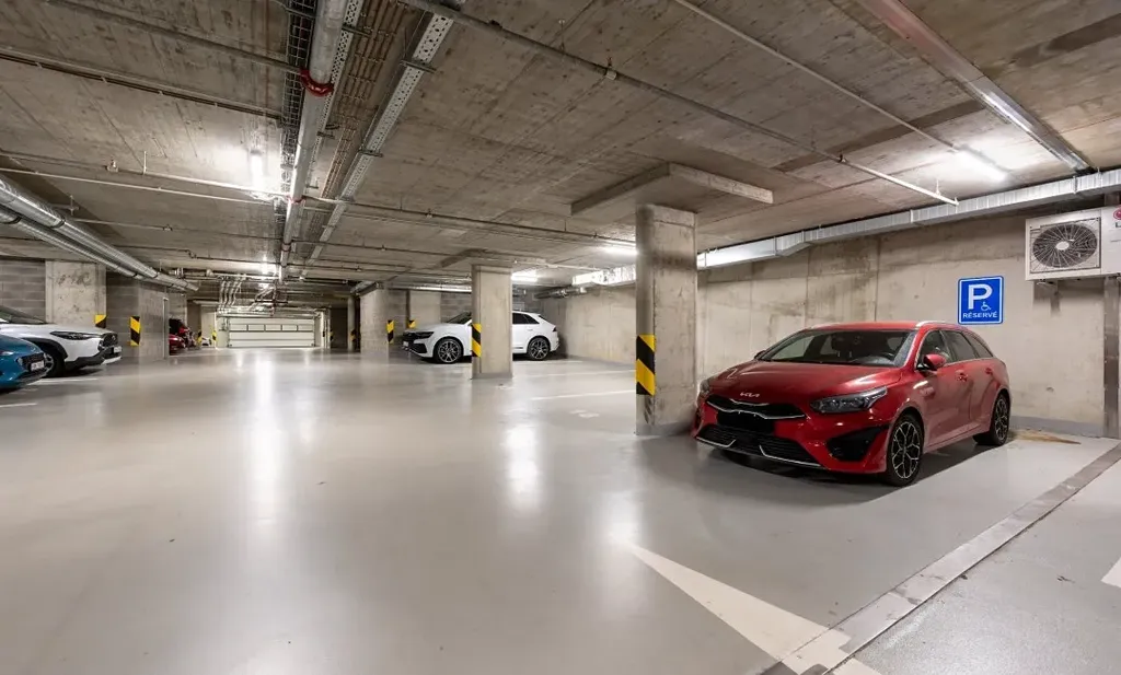 K bytu náleží sklepní kóje. Za příplatek je možné koupit také kryté parkovací stání přímo v objektu.