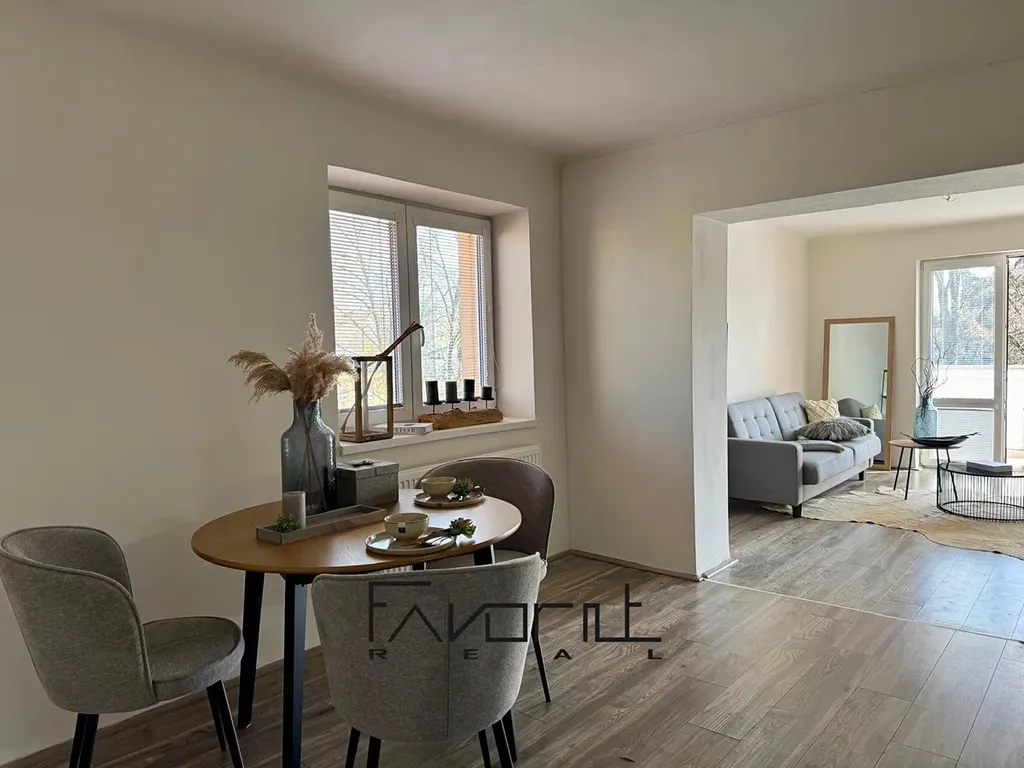 Byt má praktické dispoziční řešení. Prostorná kuchyň navazuje na obývací pokoj, ze kterého je vstup na novou lodžii. Dále je k dispozici samostatná ložnice. Koupelna s oknem je společná s WC.