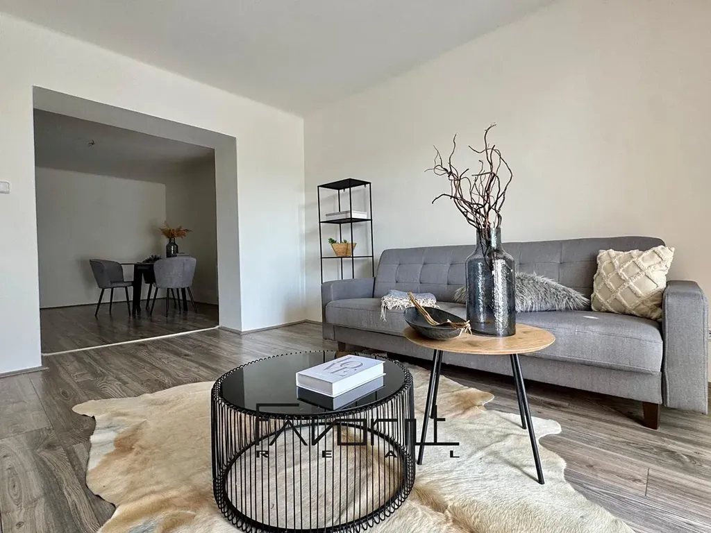 Byt prošel rekonstrukcí – nové rozvody elektřiny, topení, podlahy i omítky.