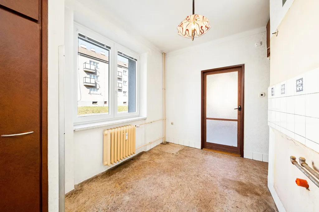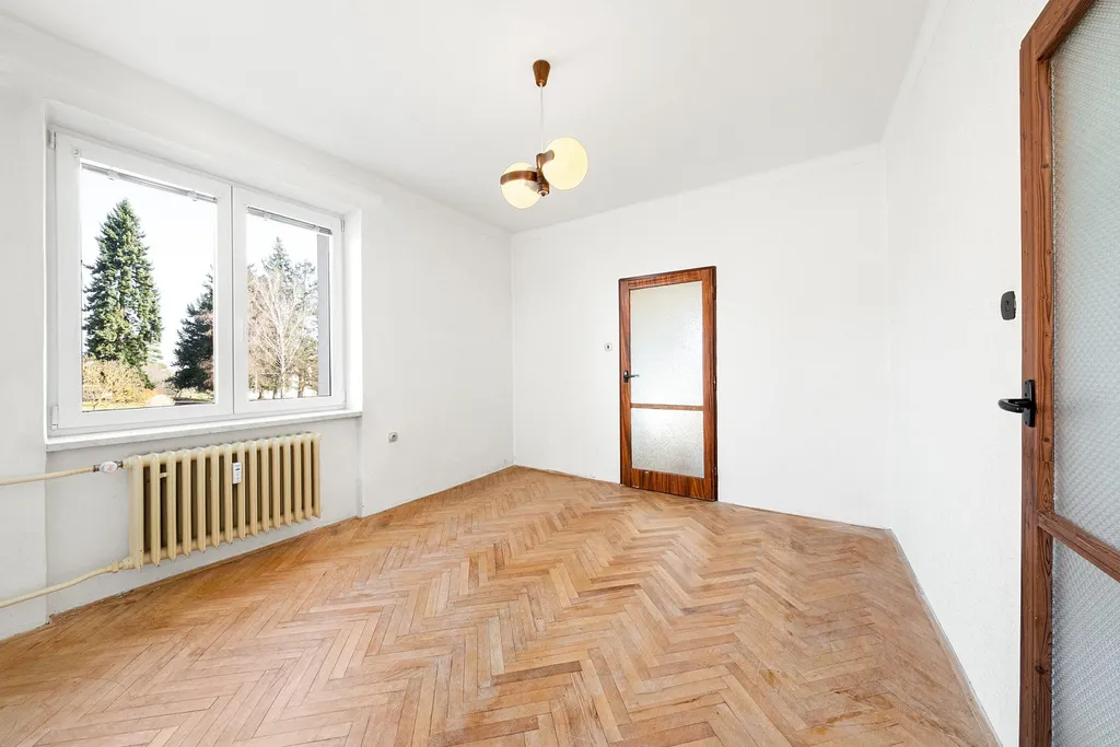 Byt je vyklizený a připravený k rekonstrukci i předání novému majiteli. V pokojích se nachází parkety v dobrém stavu, které mohou být zajímavým prvkem budoucího interiéru.