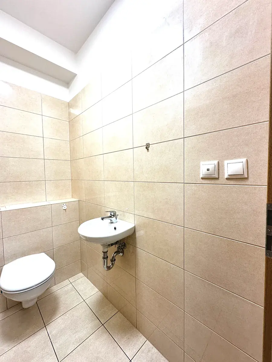Dovolujeme si Vám nabídnout pod výhradním zastoupení, pronájem částečně vybaveného bytu velikosti 2+kk, obytnou plochou 53 m2 s navazující terasou 12,4 m2 a předzahrádkou 24,2 m2, vše situované v přízemí novostavby přízemí domu v ul. Varhulíkové. Jedná se o uzavřený areál a klidnou část Holešovic s navazující cyklo stezkou podél Vltavy, směr Troja. Dipozice bytu jsou následující: vstupní hala nabízí 5,5 m2, dále navazuje solo místnost WC a místnost koupelny obsahující vanu, umyvadlo vč. koupelnové skříňky, topný žebřík a venkovní větrací profil okna vše o velikosti 5 m2, koupelna bude mít k dispozici jak pračku tak i sušičku prádla. Hlavní obytná místnost v podobě obývací sekce, nabízí 24,6 m2 a obsahuje zároveň i vybavený kuchyňský kout obsahující spotřebiče "varná deska, trouba, digestoř, myčka, lednice s mrazničkou, dřez vč. pákové baterie". Vedlejší místnost ložnice nabízí 16 m2. Obě místnosti mají k dispozici velkoformátové posuvné vstupní dveře na venkovní terasu s předzahrádkou. Zahrádka má k dispozici jak venkovní zdroj světla tak i zásuvku a venkovní zdroj vody. Topení ústřední s centrálním ohřevem vody, celkové náklady za služby v domě činí 3500,- Kč/měsíčně. Odděleně převádíme na nájemce elektroměr. Internet není zahrnut v ceně nájmu. Pokud by měl uchazeč zájem, máme v objektu k dispozici i parkovací garážové stání v suterénu domu za cenu 2500,- Kč. Pronájem je možný od dubna 2026, preferujeme single osobu popř. pár. Ohledně prohlídek nás kontaktujte na níže uvedeném čísle. MHD: Nádraží Holešovice