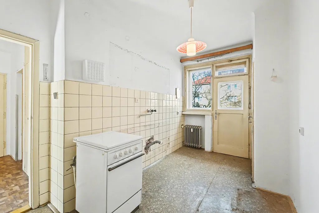 Samotný byt je v původním stavu, včetně oken a rozvodů, což dává novému majiteli příležitost vytvořit si bydlení přesně podle svých představ. Díky dobré dispozici má byt velmi zajímavý potenciál rekonstrukce.
