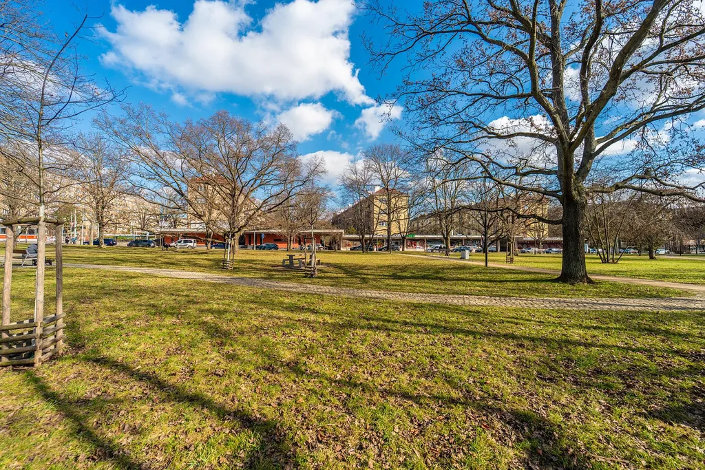 Velkým benefitem domu je také společná zahrada ve vnitrobloku, kterou mohou obyvatelé využívat ideální místo na odpočinek, dětské hry nebo jen chvíli klidu venku.