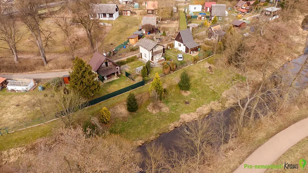 Pozemek o celkové ploše 224 m² je orientovaný na jih směrem k potoku, místo je tedy slunné po celý den. I přes bezprostřední blízkost potoka se vzhledem k vyvýšenému břehu nejedná o záplavovou oblast. Vlastník může k volnočasovým aktivitám využívat i volně přístupný pozemek u potoka. Zahrada se záhony a skleníkem má dobře využitelný tvar. Parkování možné na příjezdové obecní komunikaci, případně by bylo možné zřídit parkování na vlastním pozemku.