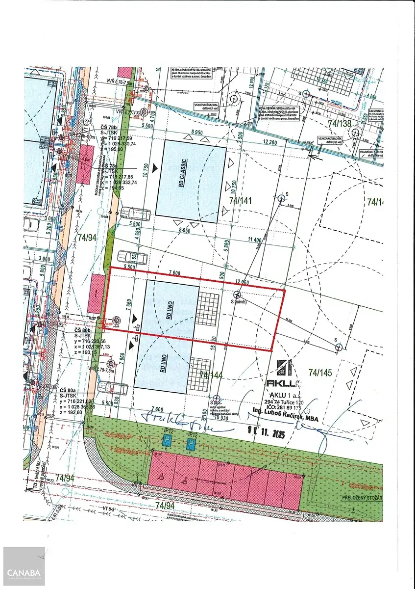 K patě pozemku budou přivedeny tyto inženýrské sítě: rozvody NN a splašková kanalizace.