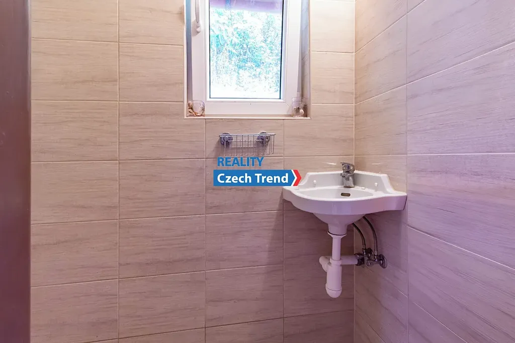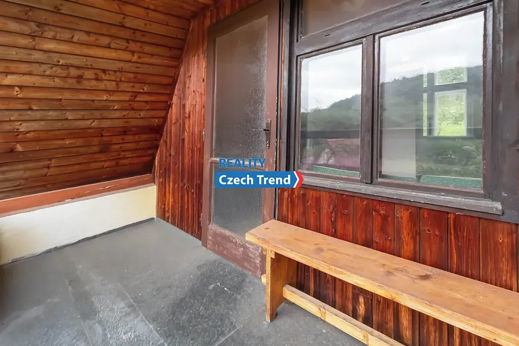 Zděná chata je patrová a svou dispozicí nabízí zázemí pro bydlení i rodinnou rekreaci. V přízemí se nachází zádveří, nově zrekonstruovaná koupelna, obývací pokoj, kuchyňka a kamna. V prvním patře pak ložnice a balkón, ze kterého se otevírá nádherný výhled na okolní přírodu. K objektu náleží také sklepní prostor. Vytápění je zajištěno pomocí kamen. V chatě jsou nové rozvody elektřiny. Pitná voda je přivedena z veřejného vodovodu a její ohřev zajišťuje elektrický bojler. Odpad je sveden do jímky, která se jednou za čas, po domluvě s ostatními obyvateli chatové oblasti, vyváží. Velkou předností této nemovitosti je rozsáhlý pozemek, který poskytuje dostatek prostoru pro posezení u grilu, umístění vířivky a pěstování nejrůznějších plodin. Aktuálně se na zahradě nachází hroznové víno, angrešt, rybíz, maliny, ostružiny a ovocné stromy - meruňka, švestka, jabloň i ořech.