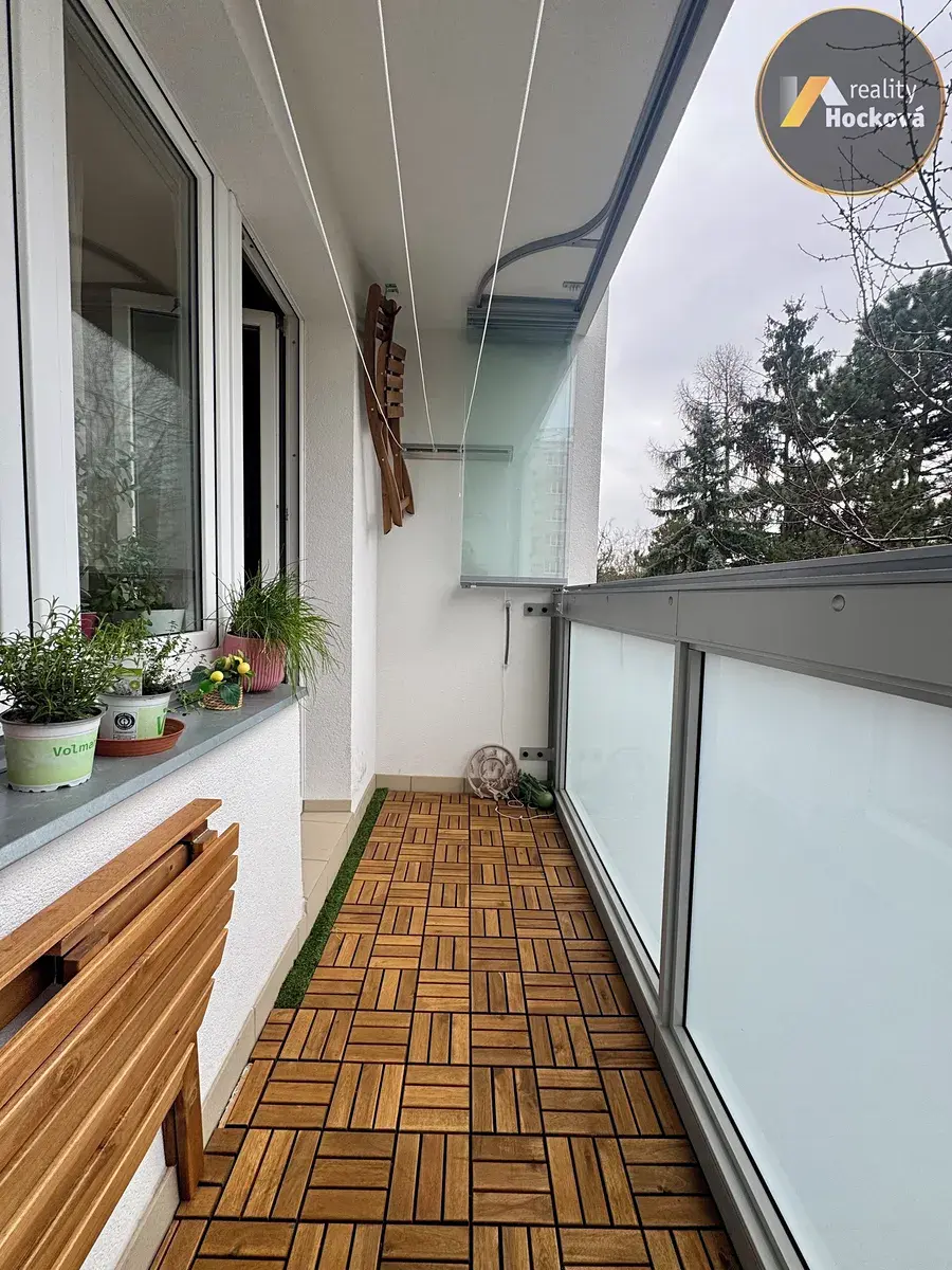 Samotný byt je ve velmi udržovaném stavu a nabízí příjemné dispoziční řešení. Při vstupu do bytu se nachází prostorná chodba, ze které je přístup na samostatné WC, koupelnu a praktickou komoru přímo v bytě. Dále byt nabízí obývací pokoj, dětský pokoj a samostatnou kuchyni s kuchyňskou linkou. Ložnice i obývací pokoj jsou orientovány do klidného vnitrobloku, přičemž z ložnice je přímý vstup na lodžii, která poskytuje příjemné místo pro odpočinek.