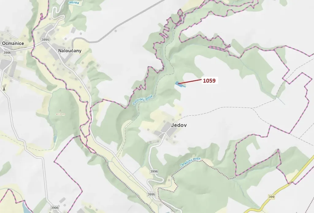 Lesní pozemek o výměře 3646 m2, parcelní číslo 1059, podíl 1/1, katastrální území Jedov, obec Náměšť nad Oslavou, obec s rozšířenou působností Náměšť nad Oslavou, okres Třebíč, Kraj Vysočina. Po těžbě.