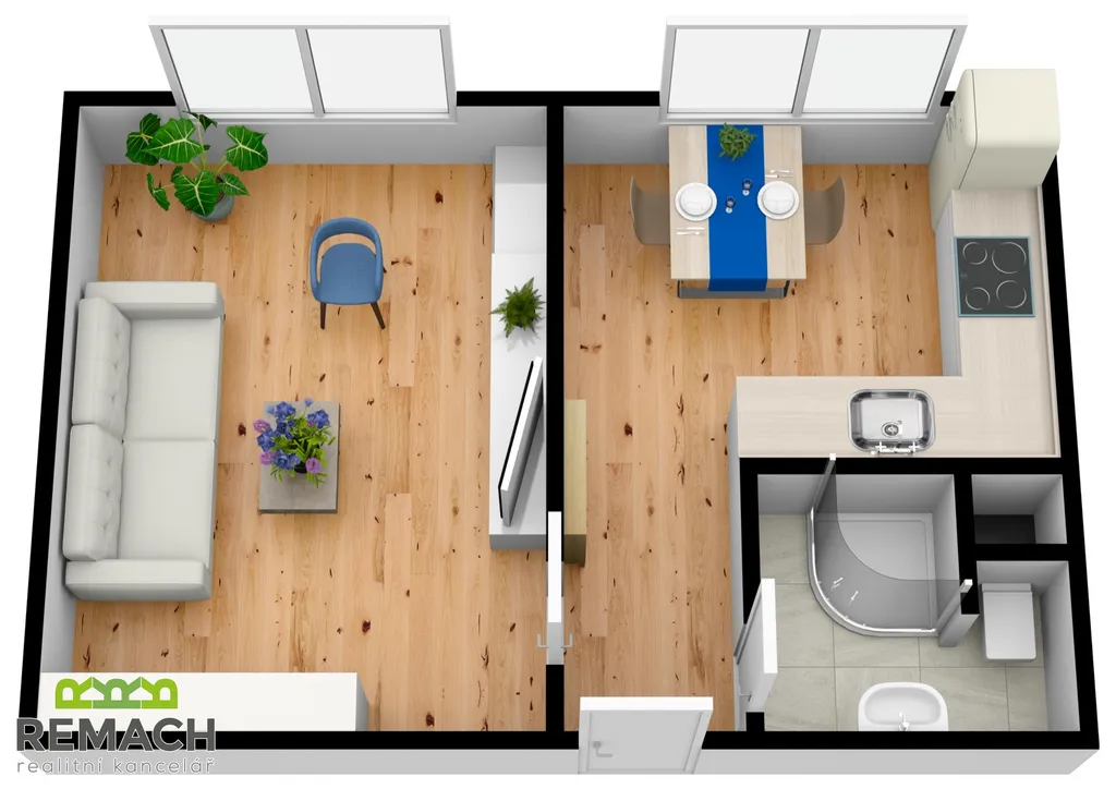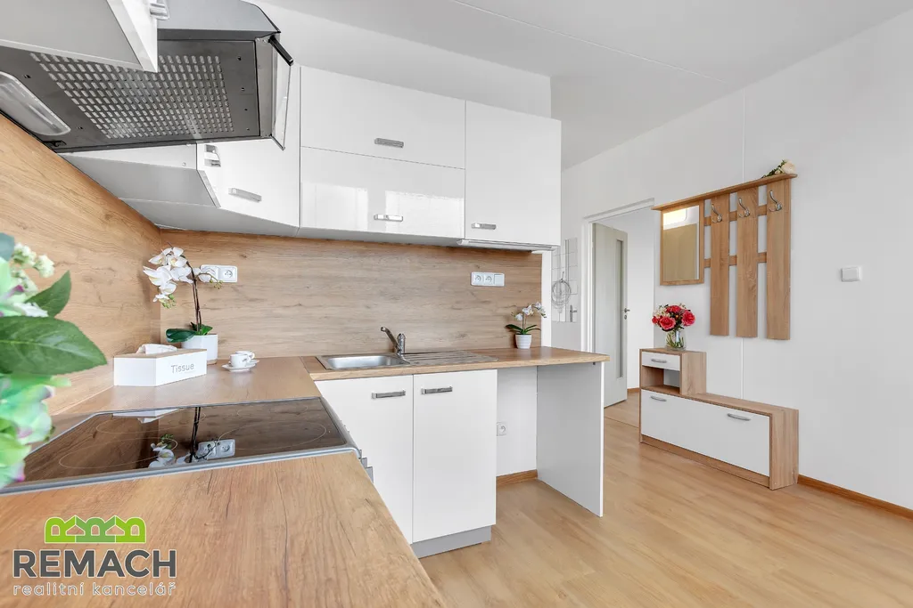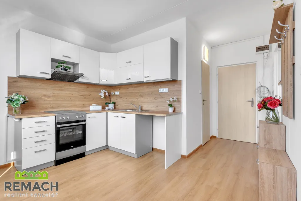 Kompletně zrekonstruovaný byt o dispozici 1+1 s podlahovou plochou 33,3 m2, nacházející se v revitalizovaném domě s výtahem, kousek od centra Uherského Hradiště, na ulici náměstí Republiky. Byt je vybaven kuchyňskou linkou se sporákem a digestoří, pračkou, lednicí a jídelní stůl, v předsíni zůstává sestava věšáku a botníku. V koupelně je sprchový kout, toaleta a umyvadlová skříňka s poličkou.