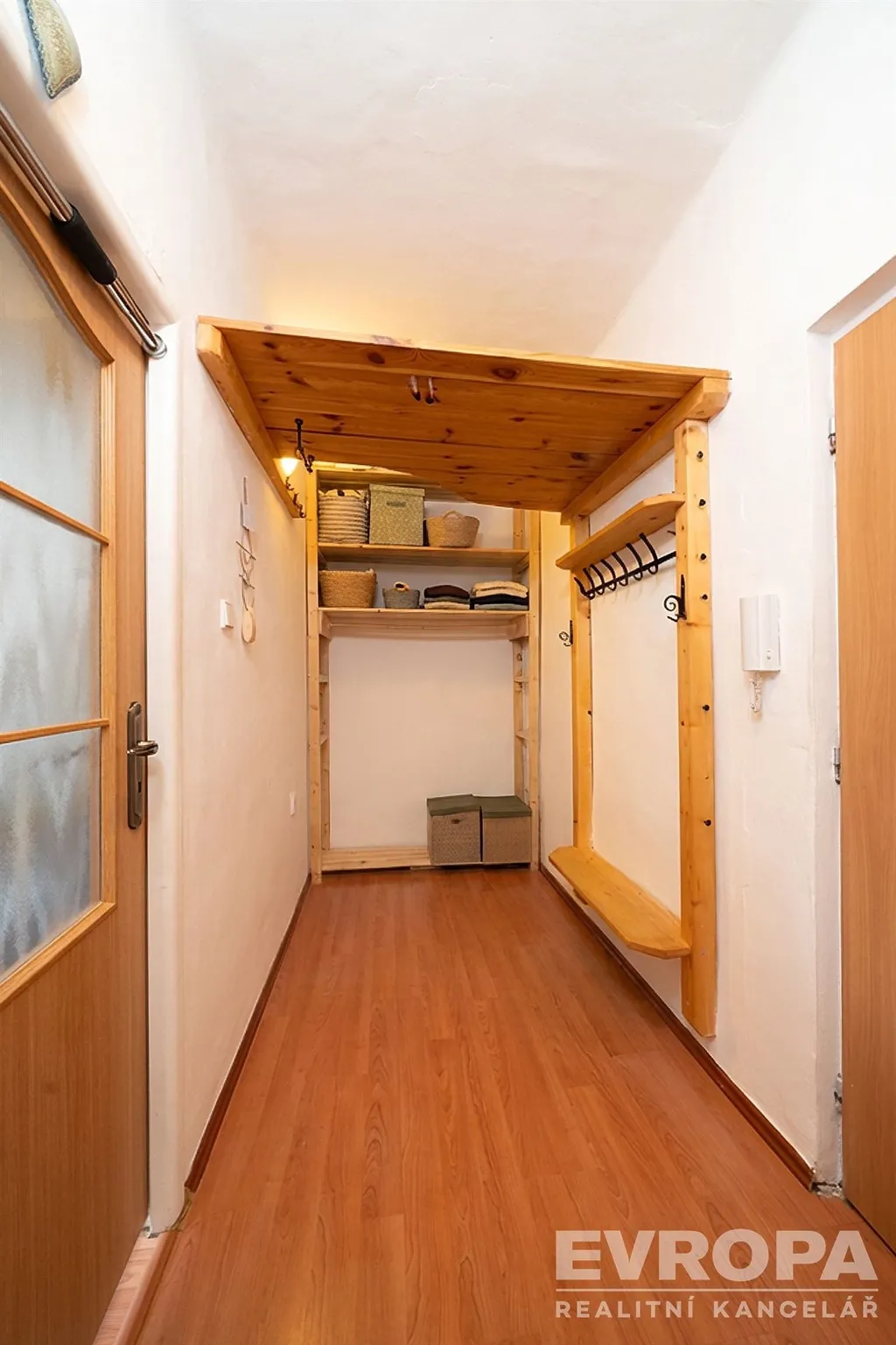 Po vstupu do bytu se ocitnete v chodbě s možností ukládání oblečení, tak aby vše bylo po ruce. Z této chodby se dostanete do koupelny s vanou a WC a dále do pokoje s lodžií a s kuchyňským koutem. Na tento pokoj navazuje malá samostatná ložnice. K bytu dále patří samostatná komora na patře bytu, kterou využijete pro uskladnění sportovního vybavení.