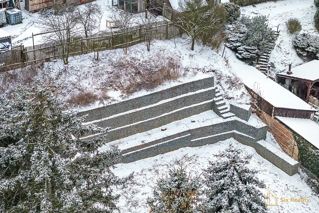 Velkou výhodou je elektřina přímo na pozemku a vlastní studna, zatímco ostatní inženýrské sítě se nacházejí na hranici pozemku, což výrazně usnadňuje budoucí napojení při stavbě.