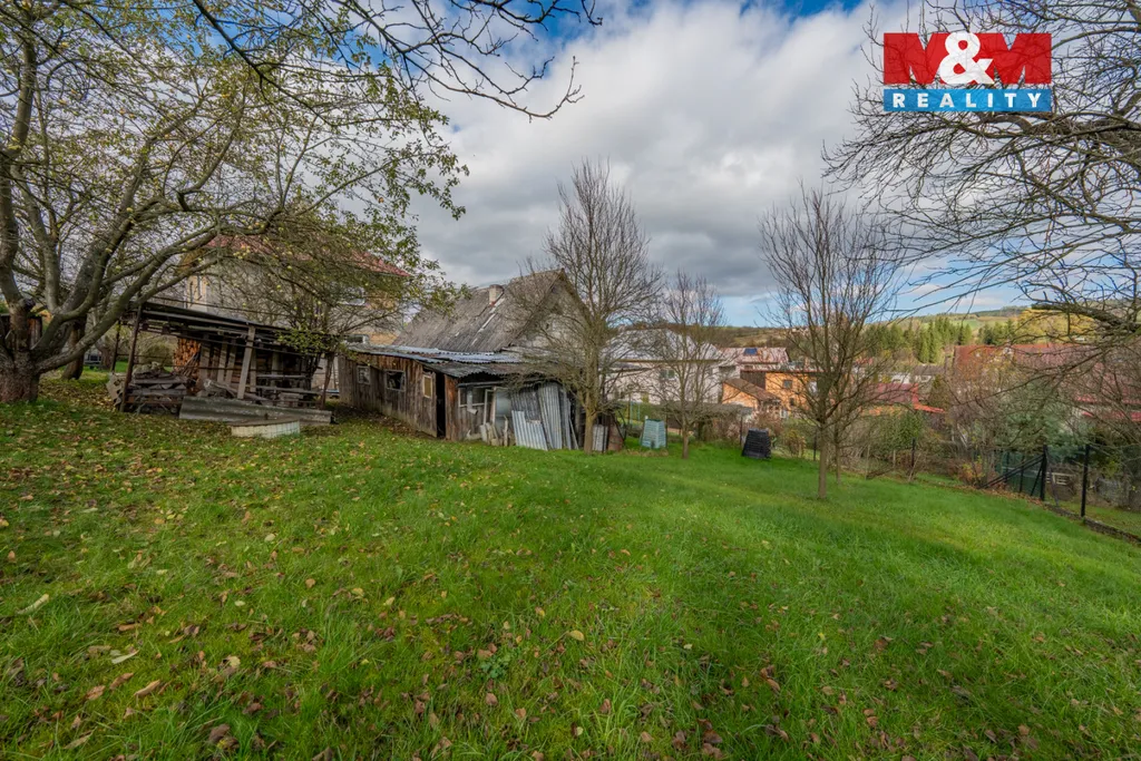 Nabízíme k prodeji částečně podsklepený, dvougenerační, obyvatelný RD (2 x 2+1) se zahradou, garáží a hospodářskou budovou. Tento dům se nachází v klidné části obce, přitom v blízkosti centra. V 1. a 2. NP se nacházejí bytové jednotky 2+1, sestávající z kuchyně, obývacího pokoje, ložnice, koupelny a odděleného WC. Půda nabízí možnost vybudování dalšího obytného prostoru. Dům je v původním stavu s postupnou částečnou rekonstrukcí(vyměněná okna, natřená střecha, koupelna), napojen na elektřinu, plyn a kanalizaci. Voda z vlastní studny. Vytápění a ohřev vody plynovým kotlem, příp. kotlem na tuhá paliva. Je určen k rekonstrukci dle Vašich představ. Doporučujeme prohlídku.