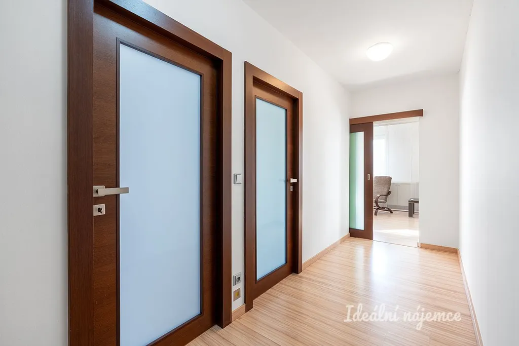 Obývací pokoj je částečně vybaven a je klimatizován z tohoto pokoje lze vstoupit na balkon. Druhý pokoj, který lze využít jako ložnici či pracovnu, je rovněž částečně zařízen – najdete zde šatní skříň a police pro uskladnění věcí. V ložnici je manželská postel a prostorná šatní skříň. Koupelna je kompletně vybavena – prostorných sprchovým koutem a koupelnovou skříňkou, umístěnou nad umyvadlem, součástí je i pračka. Toaleta se nachází odděleně. Na chodbě bytu se nachází další praktický úložný prostor, který ocení každý nájemce.