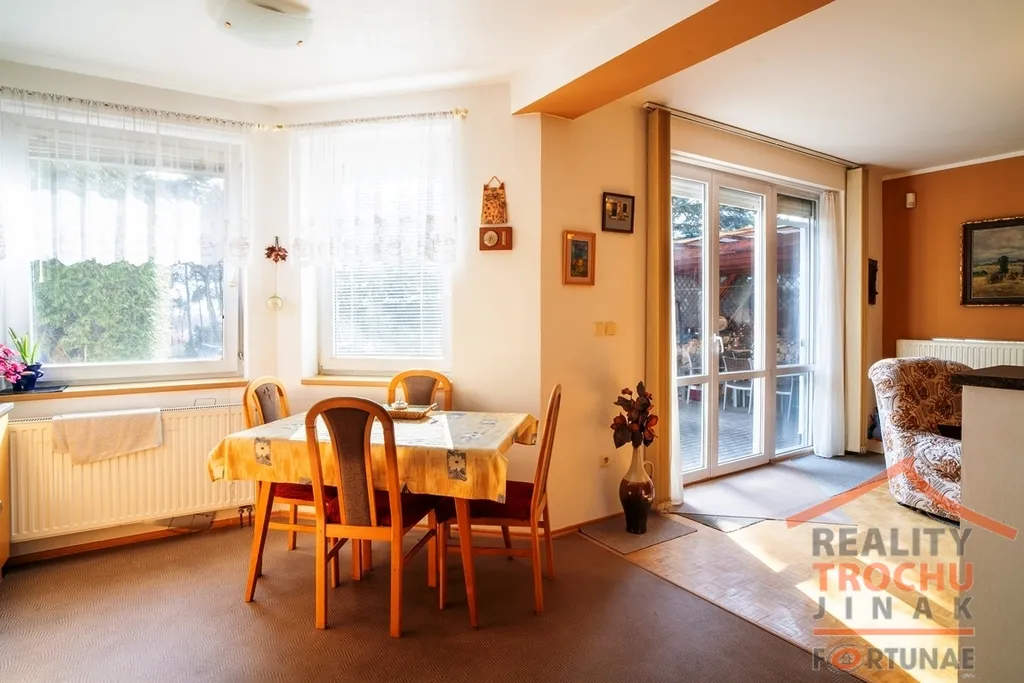 Nabízíme k prodeji patrový rodinný řadový dům s obytným podkrovím v obci Předměřice nad Labem. Rodinný dům je zděný se sedlovou střechou. Na pozemku je pergola s posezením. Součástí domu je garáž. Vytápění nemovitosti – ústřední topení – plynový kotel a lokální krbová kamna v 1.NP. Plocha pozemku činí 522 m², užitná plocha 114 m². Dům je napojen na kanalizaci, vodovod, plyn, elektro 230/400V, na střeše jsou fotovoltaické panely k ohřevu teplé vody. Podlahy: keramická dlažba, PVC, dřevěné a koberce.