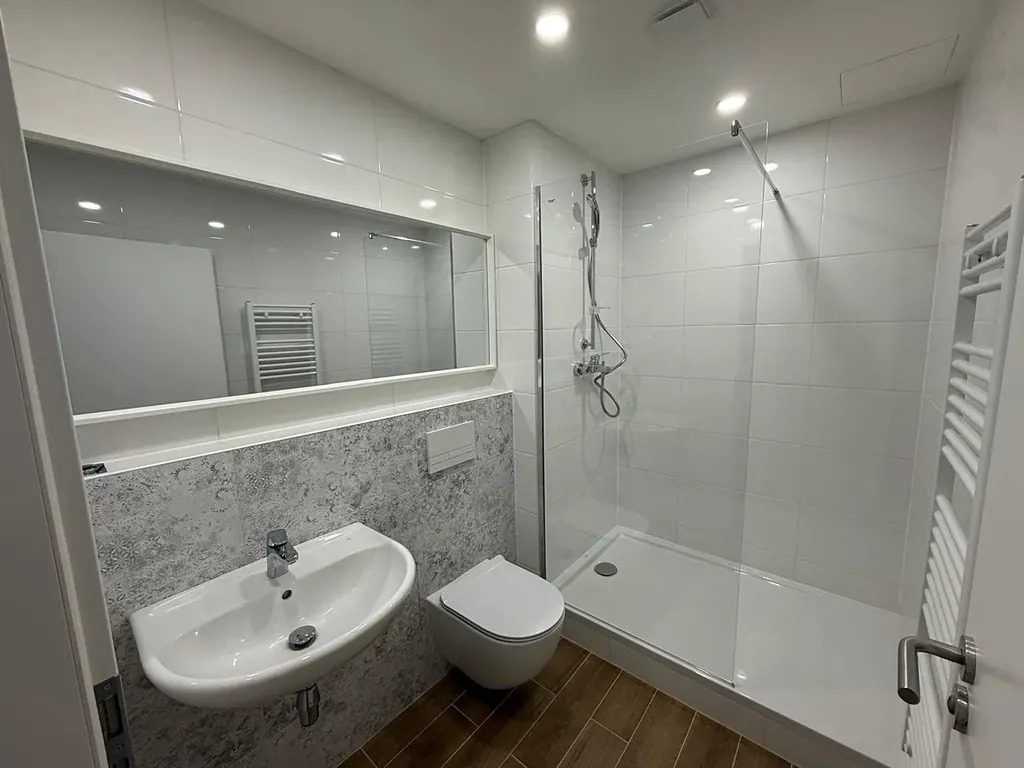 - kompletně vybavené koupelny včetně pračky se sušičkou