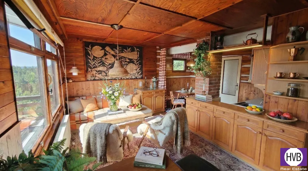 Prodej zařízené chaty 5+kk/B 70 m², pozemek 622 m², Slapy - Živohošť, okr. Benešov ve slepé ulici uzavřené chatové oblasti Žlíbek. Rekreační, udržovaná stavba je v rodině vlastníka od její výstavby a nabízí velkorysou dispozici s dvěma nezávislými obytnými podlažími. V prvním jsou 2 pokoje, první s teplovzdušným, otevřeným krbem, vchodem přímo na terasu a jednou ložnicí. V druhém nadzemním podlaží se samostatným vchodem se nachází hlavní obývací prostor s kuchyňským koutem, jídelnou, vchodem na balkon, dalšími dvěma pokoji, koupelnou a toaletou, další toaleta je přístupná z venkovních prostor v přízemí.
