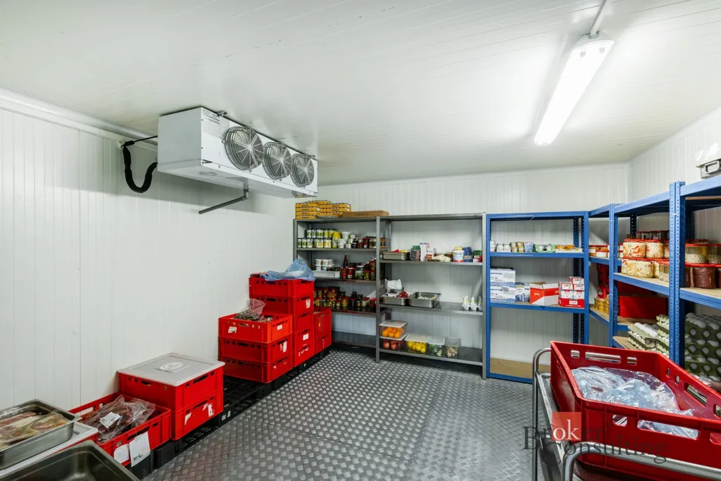 Velkou předností nemovitosti je rozsáhlá profesionální kuchyně ve velmi dobrém technickém i hygienickém stavu, vybavená gastronomickou technologií, nerezovými pracovními plochami, varnými bloky, konvektomatem a digestořemi. Součástí je také kompletní zázemí včetně přípraven, skladů a velkého chladicího boxu.