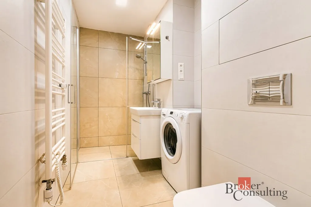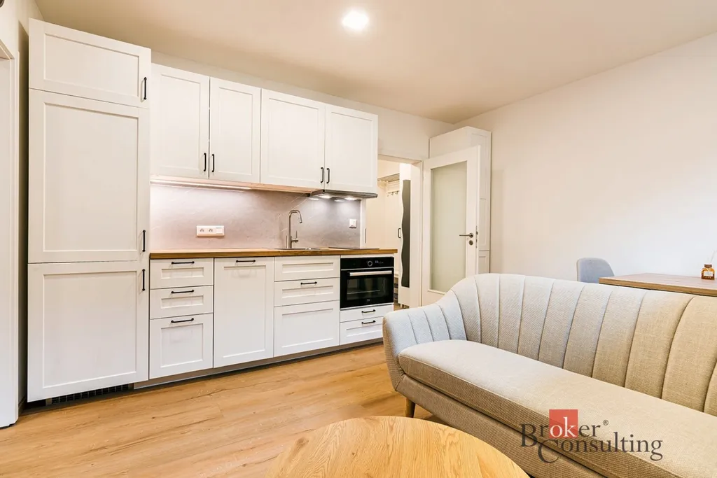 Byt je situován v suterénu bytového domu a díky praktickému řešení nabízí příjemné a funkční bydlení pro jednotlivce nebo pár. Dispozice zahrnuje obývací pokoj s kuchyňským koutem, samostatnou ložnici a koupelnu. Součástí vybavení je elektrický vařič, lednice, trouba, pračka i nábytek, který lze vidět na fotografiích.