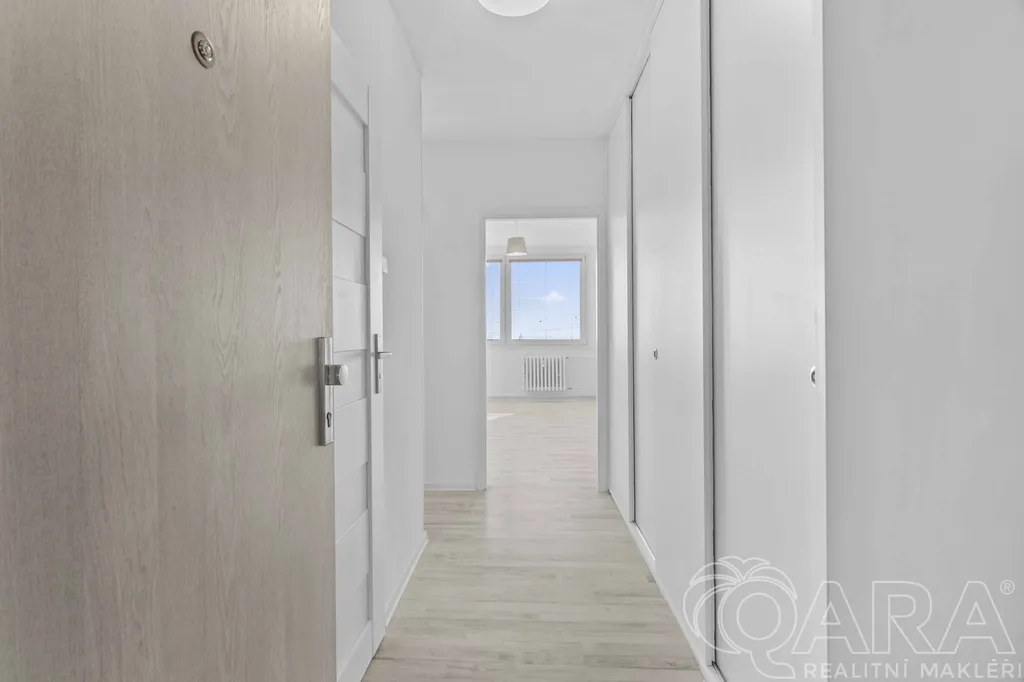 Dispozice bytu je velmi praktická – obývací pokoj s kuchyňským koutem, samostatná ložnice, chodba s velkou vestavěnou skříní a koupelna. Kuchyňská linka je vybavena plynovým sporákem, troubou a myčkou. Byt se pronajímá nezařízený, takže si jej můžete zařídit přesně podle svých představ. K bytu náleží také sklep.
