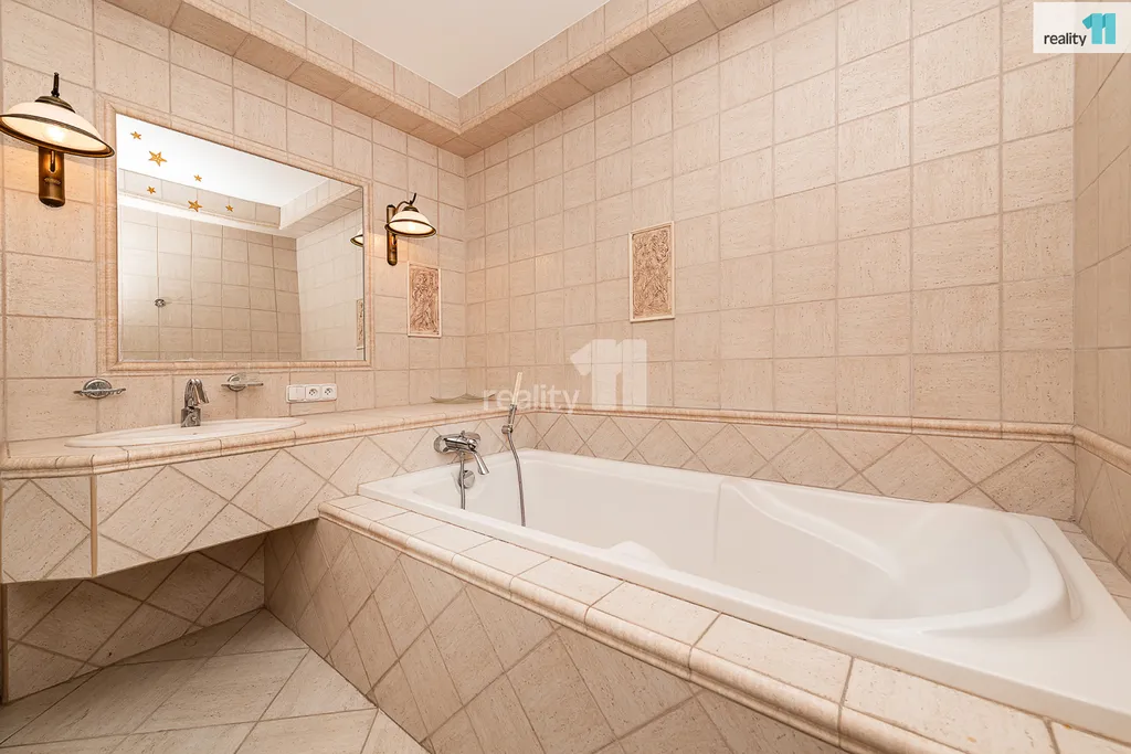 Komfort podtrhují interiérové dveře s tichým magnetickým zavíráním. Koupelna nabízí vanu i sprchový kout a je zde také pračka. Toaleta je samostatná. Vytápění spolehlivě zajišťuje vlastní plynový kotel.