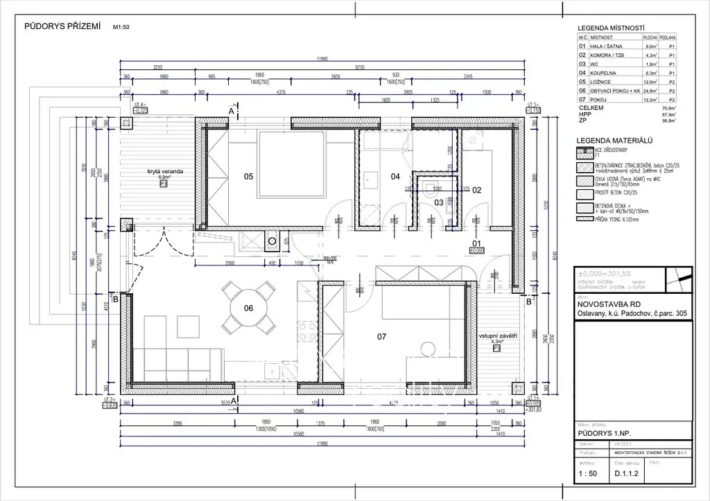 • Krytá terasa: 6,9 m2.