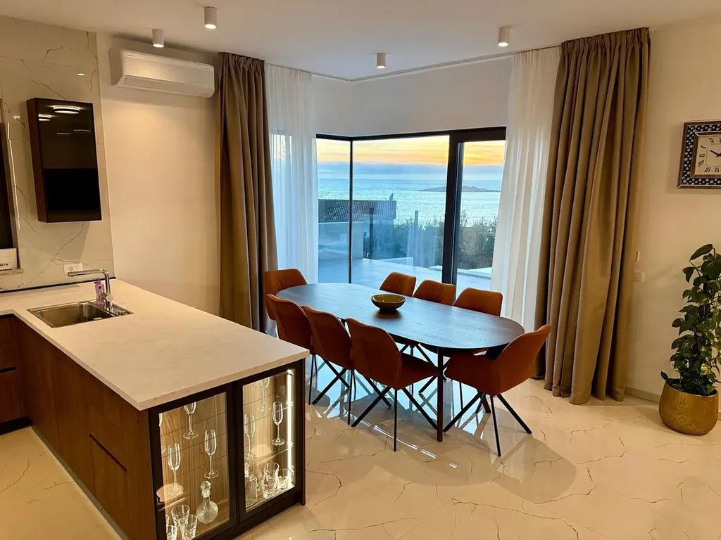 Mimořádná vila ve tvaru „diamantu“ se nachází v oblasti Rogoznica. Leží pouhých 100 metrů od moře a z každého patra nabízí úchvatný výhled na Jadran. Vila je umístěna na místě, kde se dvě místní cesty spojují do slepé ulice, což zajišťuje snadnou dostupnost a zároveň luxusní bydlení s naprostým soukromím.