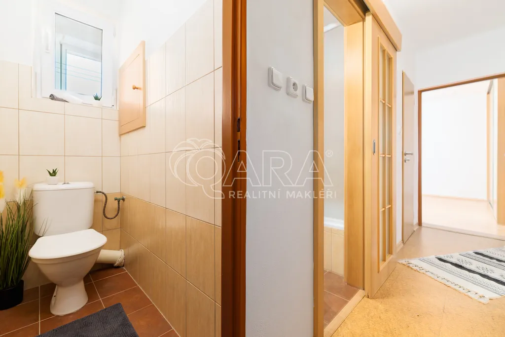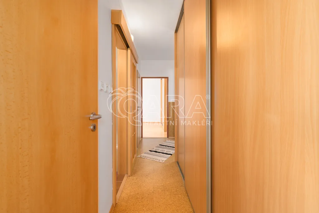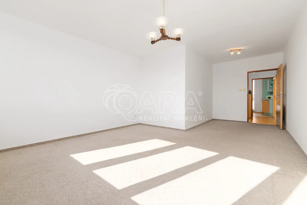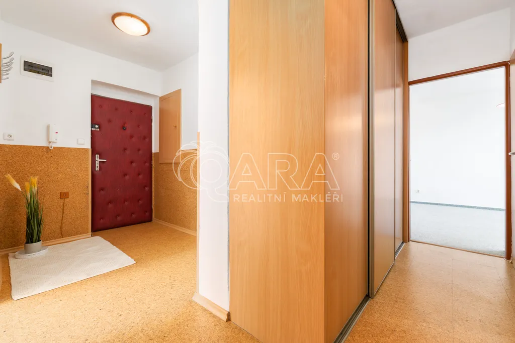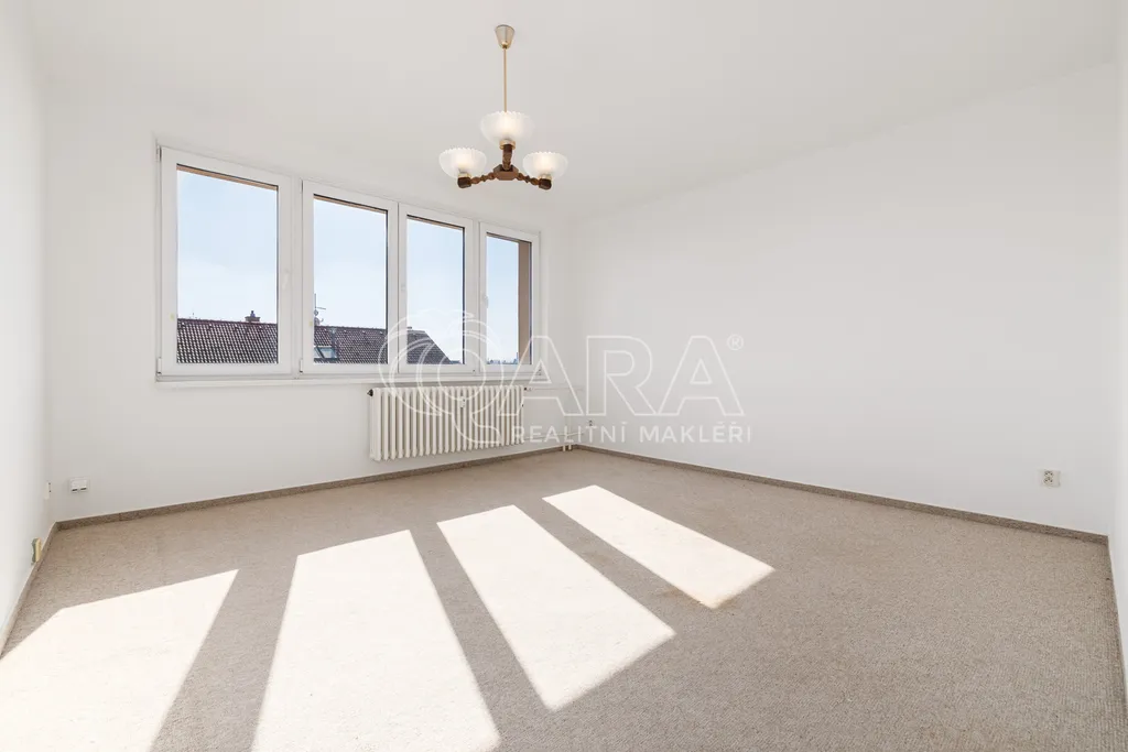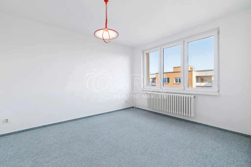 Dispozice bytu je řešena velmi prakticky a nabízí vstupní předsíň, samostatnou kuchyni, prostorný obývací pokoj, dvě ložnice, koupelnu, samostatné WC a praktickou spíž, která poskytuje další úložný prostor. Díky velikosti a rozložení místností působí byt vzdušně a nabízí dostatek prostoru pro pohodlné rodinné bydlení.