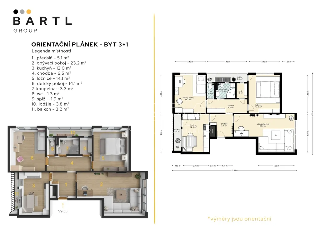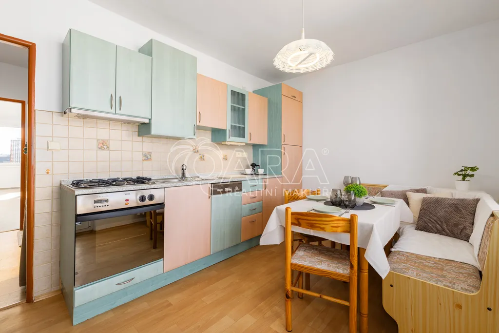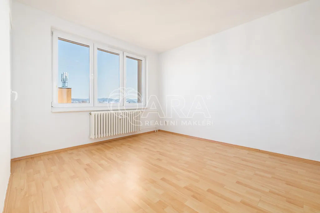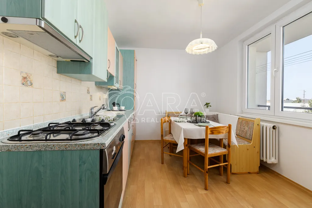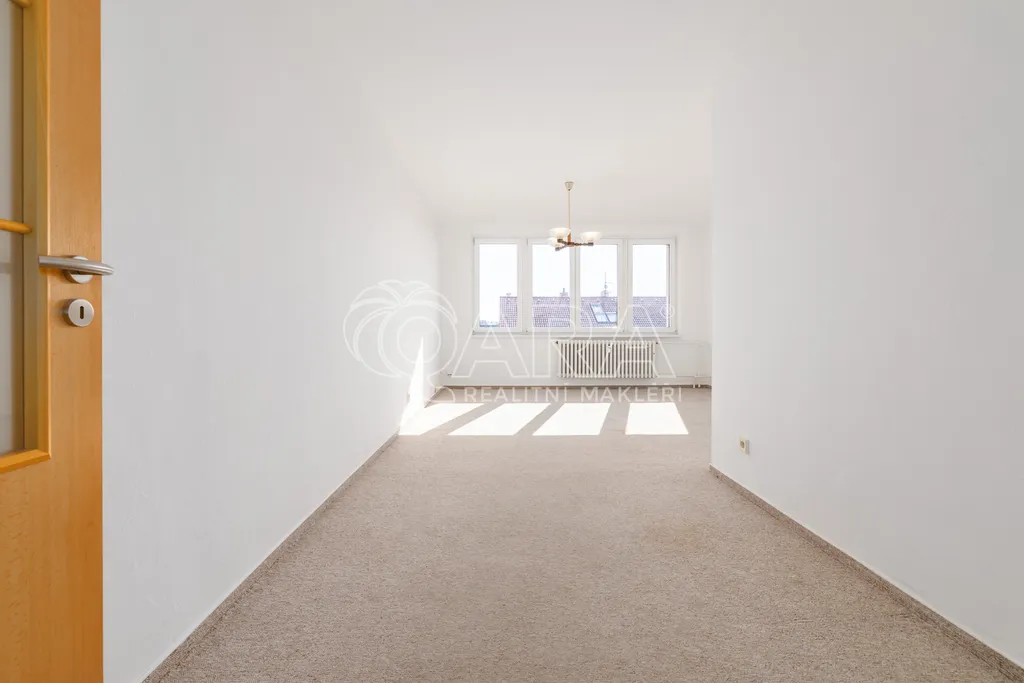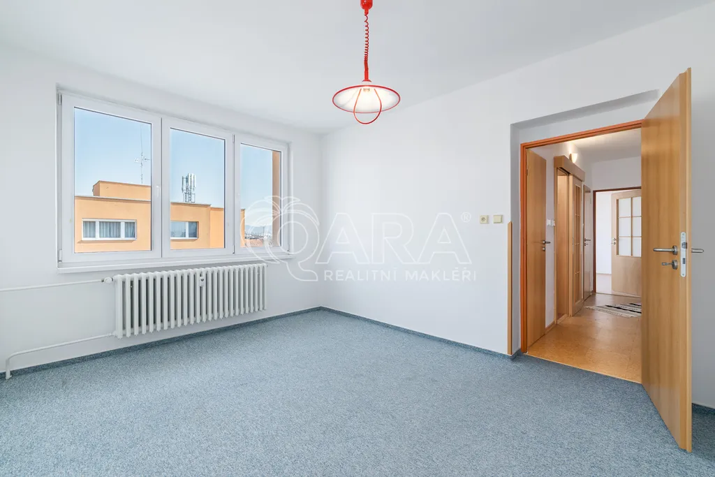 Dispozice bytu je řešena velmi prakticky a nabízí vstupní předsíň, samostatnou kuchyni, prostorný obývací pokoj, dvě ložnice, koupelnu, samostatné WC a praktickou spíž, která poskytuje další úložný prostor. Díky velikosti a rozložení místností působí byt vzdušně a nabízí dostatek prostoru pro pohodlné rodinné bydlení.
