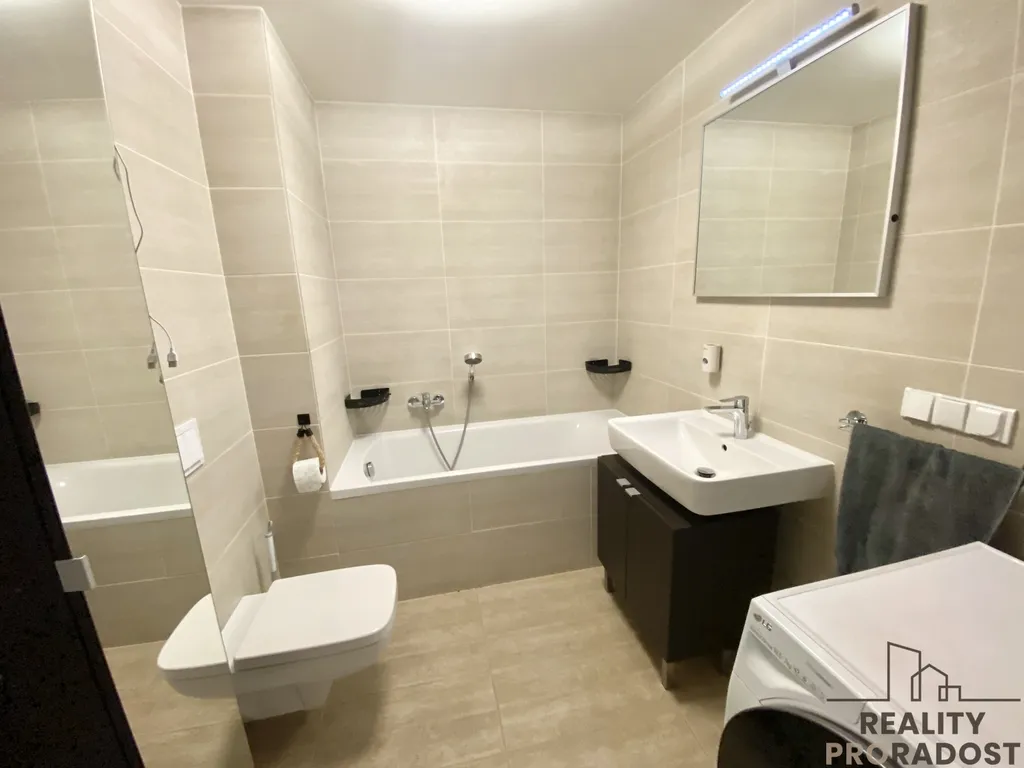 V bytě je velká vstupní chodba s vestavěnými skříněmi a prostorný obývací pokoj s kuchyňským koutem. Kuchyně je vyrobená na míru a je včetně spotřebičů - varná deska, trouba, myčka a mikrovlnná trouba. Z obývacího pokoje je vstup na balkon s výhledem do dvora. Balkon je po celé délce obývacího pokoje a je využíván k relaxaci. Dále je v bytě ložnice se zajímavě uloženým oknem a moderní koupelna s vanou, umývadlem, WC a místem na pračku.