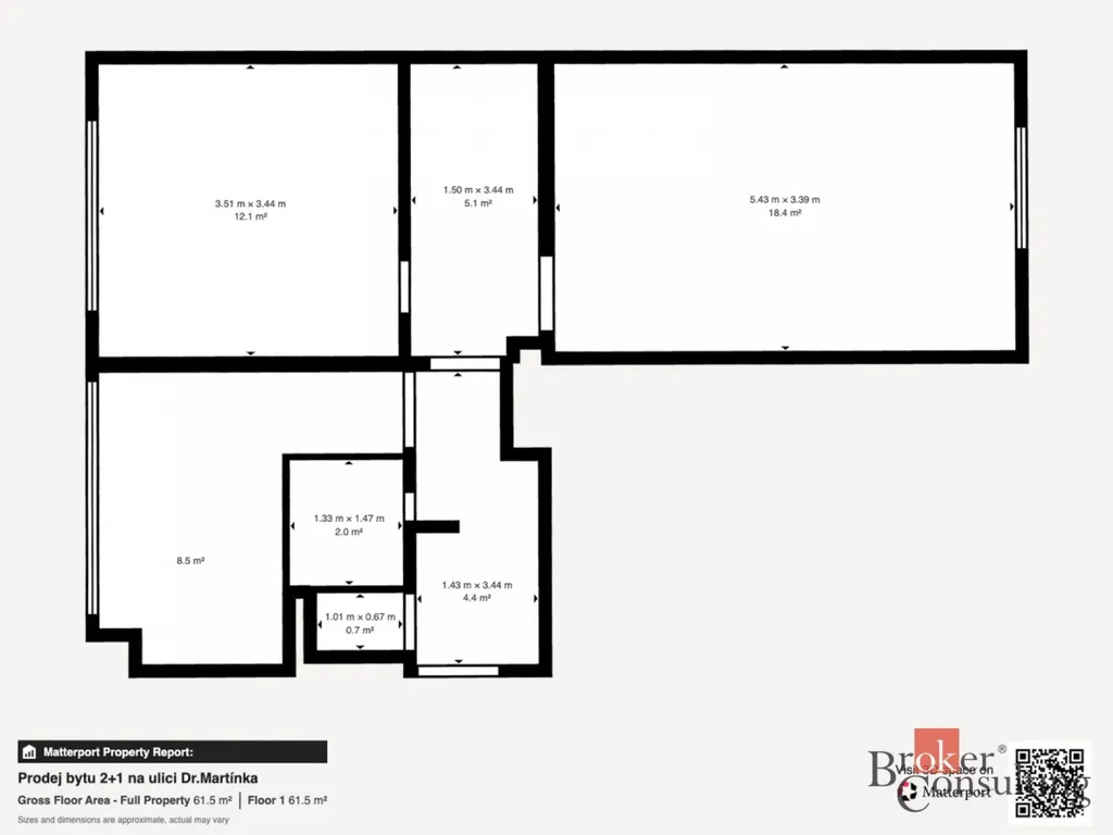 Velkou výhodou je praktické dispoziční řešení – oba pokoje jsou samostatné a neprůchozí, přístupné z předsíně. Dispozice tak nabízí dostatek soukromí a je vhodná jak pro vlastní bydlení, tak i jako investiční byt k pronájmu.