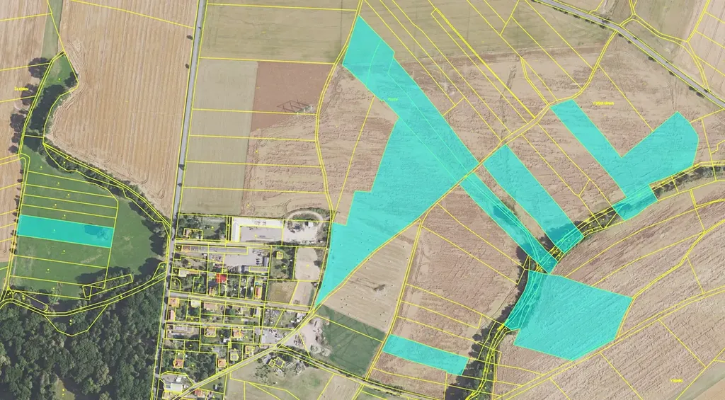 Převážná většina nabízených parcel jsou zemědělsky využívané. Menší část v západní oblasti u Ovčína zahrnuje lesní porosty a zpevněné plochy.
