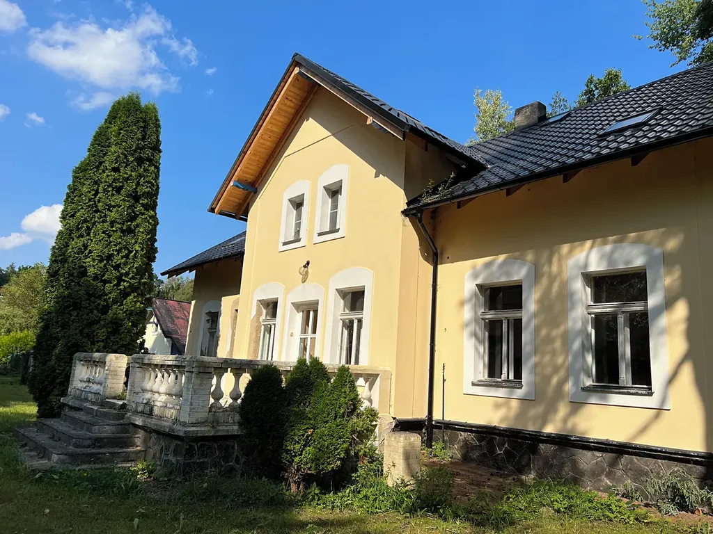 Hlavní budova má cca 360m2 je zkolaudovaná v tuto chvíli jako objekt určený k bydlení pro rekreační využití a má samostatné popisné číslo. V této budově byla v prosinci v roce 2021 dokončena celková rekonstrukce střechy, včetně výměny potřebné konstrukce a dodání nové střešní krytiny. Budova je ve stavu vhodném k rekonstrukci. Jejím ideálním využitím by byl penzion, nebo větší vila pro rodinu. Tato budova má výhled na Hubačovský rybník, který se nachází od hranice pozemku cca 50m.