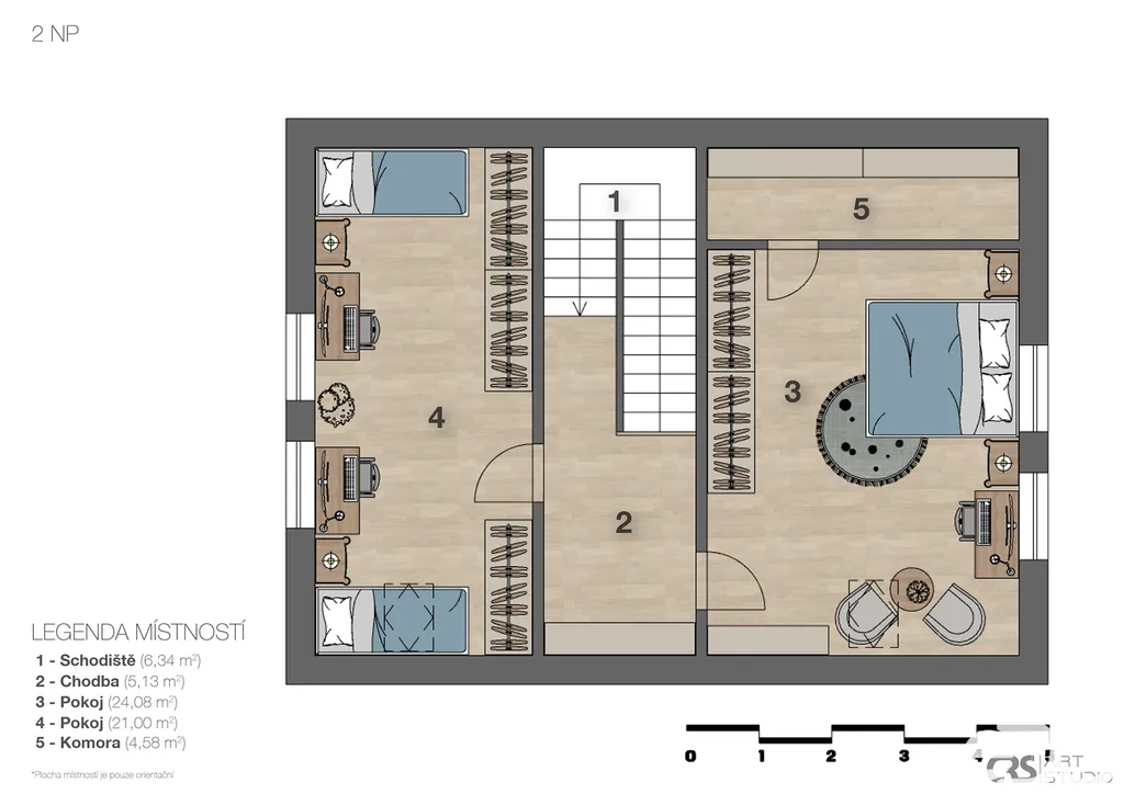 Ve spodním patře je přistavěna místnost, nad kterou se nabízí vybudování veliké terasy o výměře cca 30 m2.