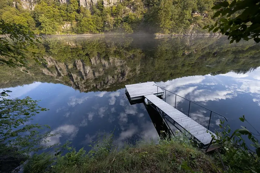 Nabízíme k prodeji nově zrekonstruovanou rekreační chatu s výjimečnou polohou přímo nad nádrží přehrady Štěchovice s výhledem na skalní stěny Vltavského kaňonu. Chata prošla kompletní přestavbou s důrazem na kvalitní materiály a propojení interiéru s okolní přírodou. Interiér je obložen přírodním smrkovým dřevem, objekt je postaven jako dřevěná sendvičová konstrukce s tepelnou izolací.