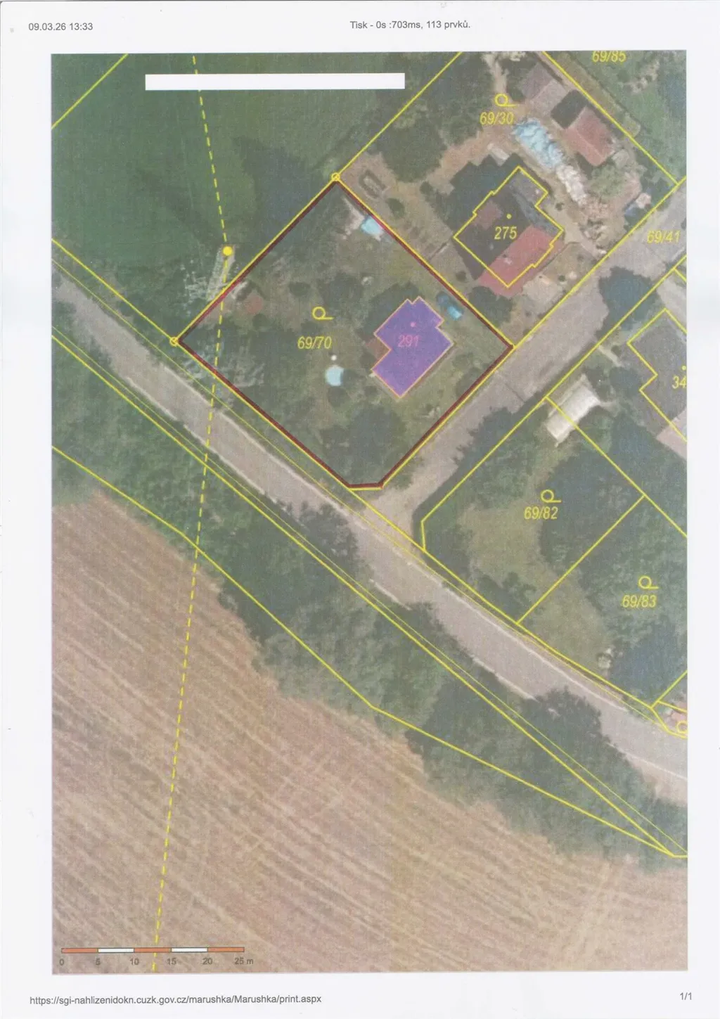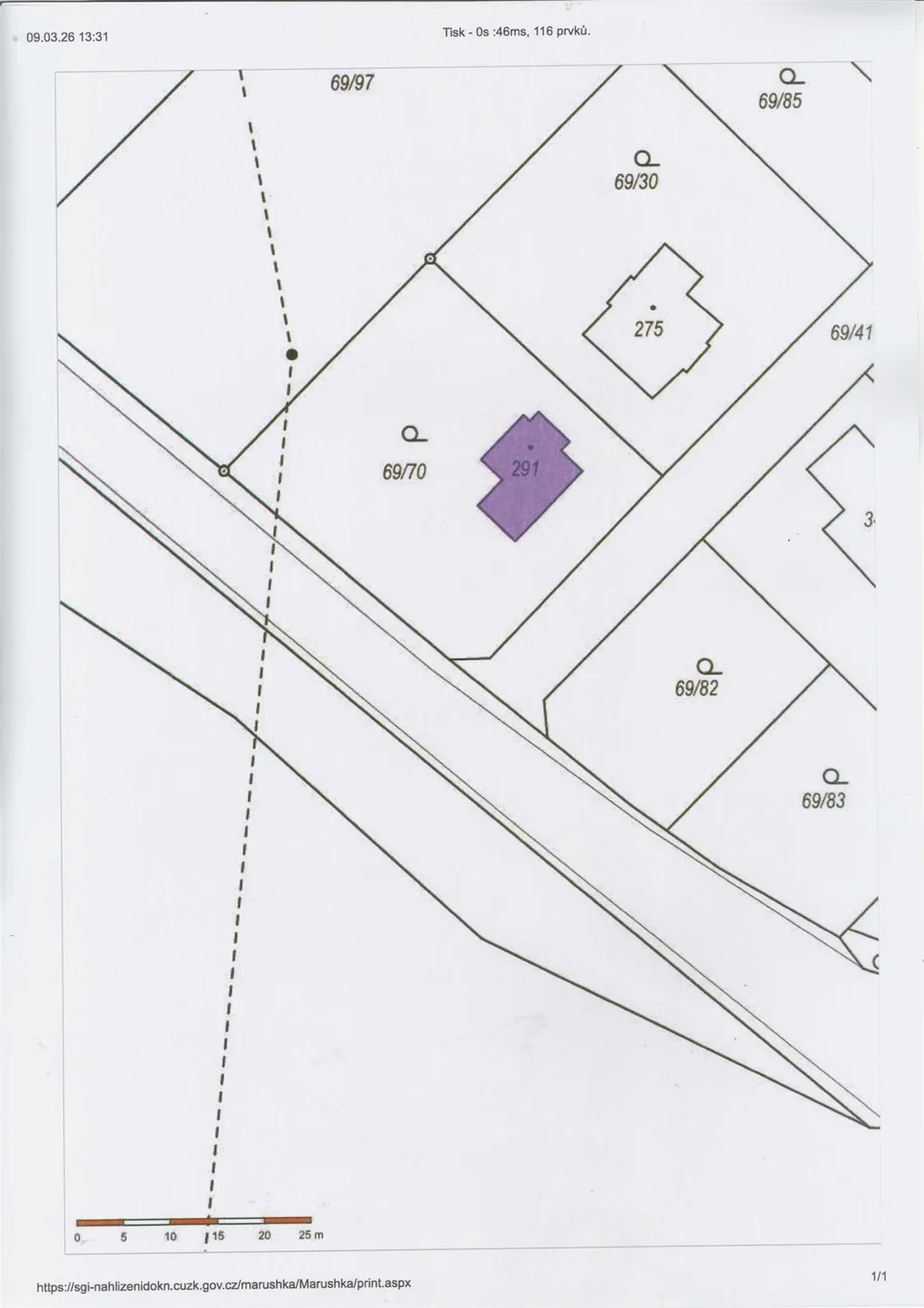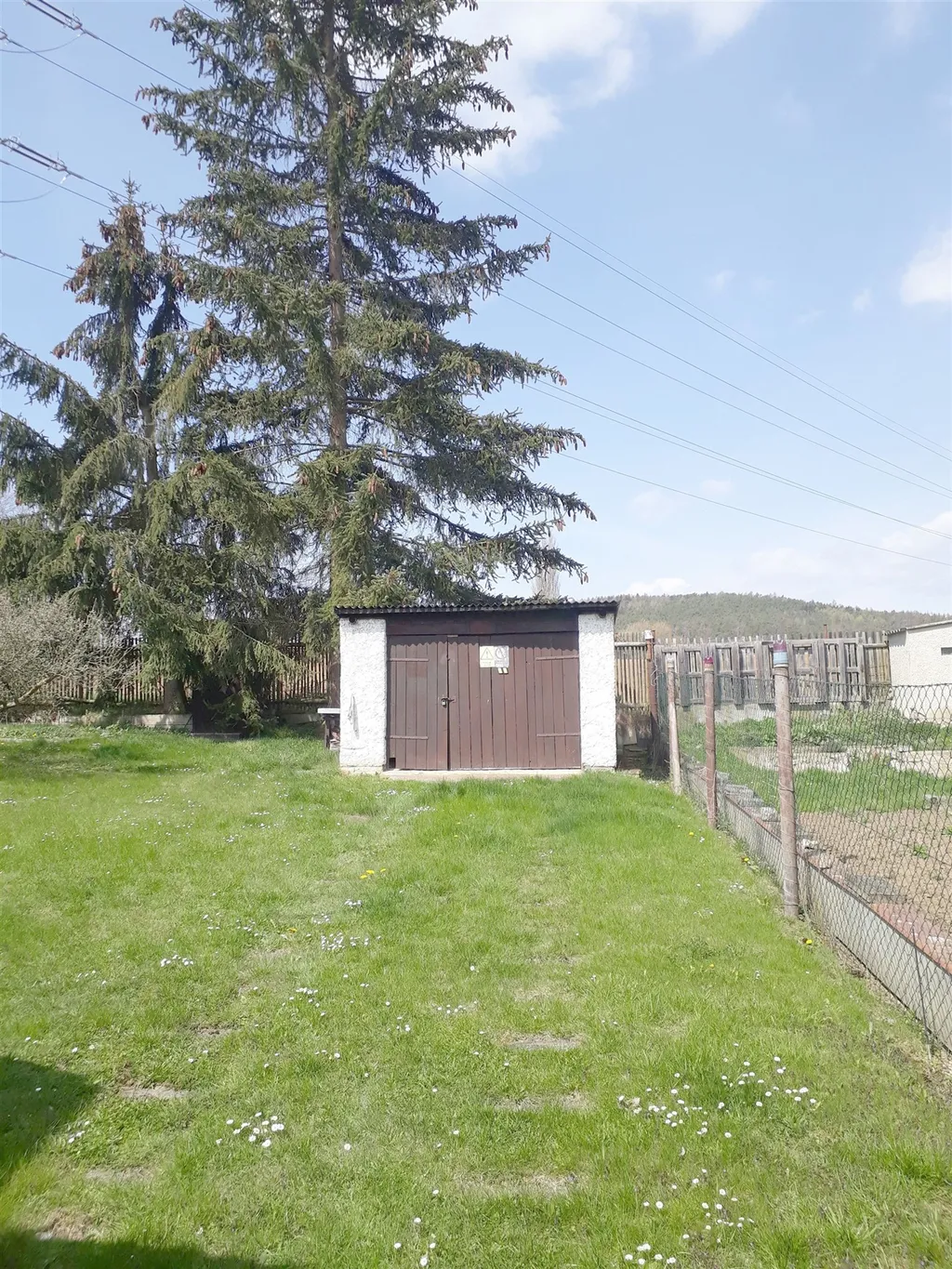 Přes okraj pozemku vede elektrické vedení.