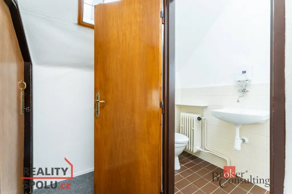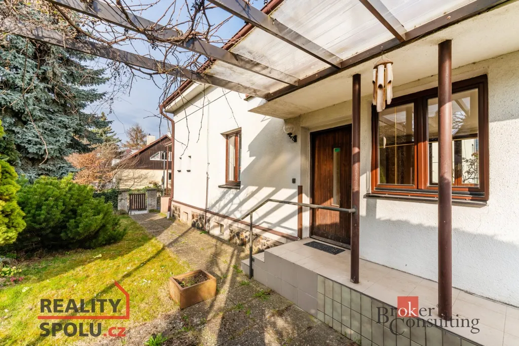 V prvním poschodí je k dispozici nová kuchyňská linka vybavená troubou, varnou deskou, myčkou i lednicí, dále toaleta oddělená od koupelny s velkým sprchovým koutem, prostorný obývací pokoj a komora. Dům disponuje dvěma vstupy - standardně projektovaným hlavním vchodem do předsíně nebo rekonstrukcí přidaným vchodem přes zimní zahradu. Ve druhém poschodí se nachází komora, šatna, toaleta a dvě hlavní místnosti využitelné jako ložnice či například pracovna, jedna místnost má přímý vstup na velkorysou terasu s výhledem do zahrady. Součástí domu je i půda a sklep. Na pozemku je kromě hlavní stavby umístěna také zděná garáž s příjezdovou cestou.