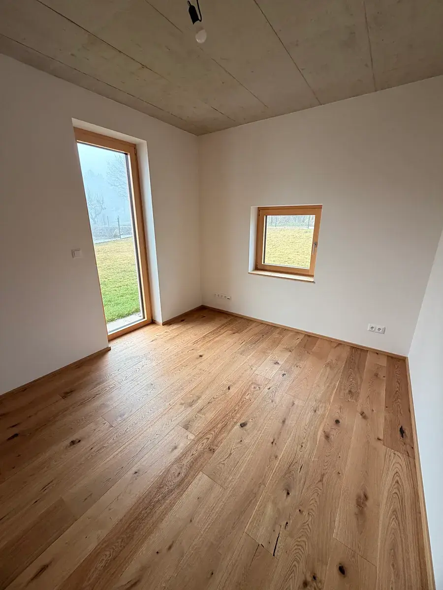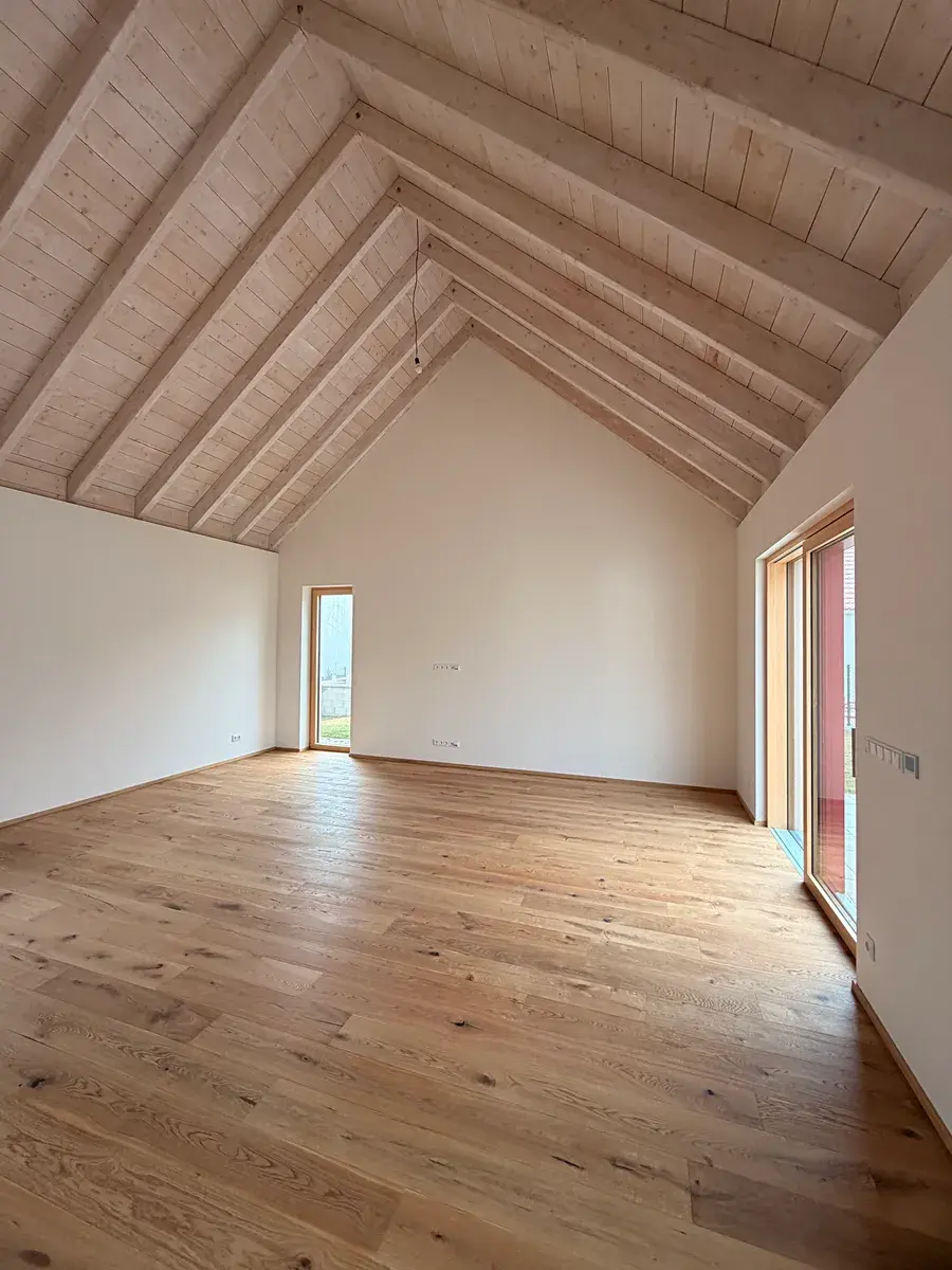 Dům bude dokončen ve vysokém standardu, včetně dřevěných podlah, obkladů, dlažeb, kompletní sanity i interiérových dveří.