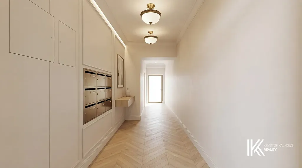 Druhé podlaží nabízí další samostatnou jednotku o užitné ploše přibližně 96,5 m². Ta je tvořena čtyřmi místnostmi, velkou halou, koupelnou a samostatnou toaletou. Díky velikosti a uspořádání prostoru se i zde nabízí možnost změny dispozice a rozdělení na dvě menší bytové jednotky. Velká centrální hala umožňuje vytvořit nové vstupy do jednotlivých bytů a přirozeně tak vytvořit dva samostatné celky bez nutnosti zásadních konstrukčních zásahů.