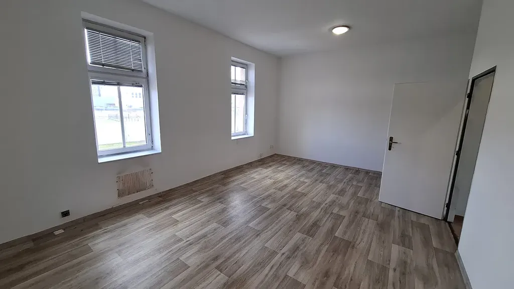Byt se nachází ve druhém nadzemním podlaží menšího bytového domu a je pronajímaný jako prázdný.