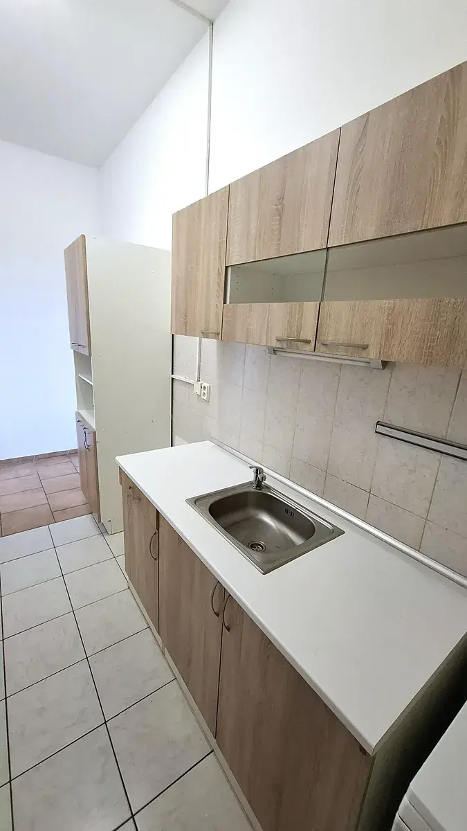 Po vstupu do bytu se nacházíme v chodbě, ze které je možné vstoupit do prvního pokoje (s balkonem orientovaným na severozápad), do menší kuchyně (kuch. linka se sporákem, troubou a digestoří) a dále do druhé obytné místnosti nebo do koupelny.