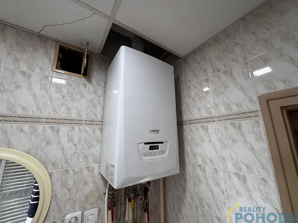 Byt je tvořen ze dvou obytných místností, součástí je kuchyňská linka s elektrickým sporákem, dále koupelna se sprchovým koutem, toaletou, vstupní chodba a menší komora. Vybavení bytu : kuchyňská linka, sporák se sklokeramickou deskou, lednice, pračka. Vytápění bytu je ústřední na vlastní plynový kotel.