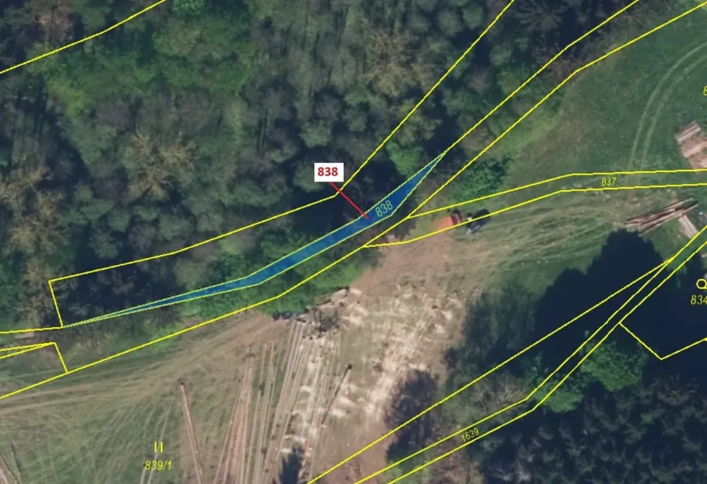 Lesní pozemek o výměře 72 m2, parcelní číslo 838, podíl 1/1, katastrální území Ohnišov, obec Ohnišov, obec s rozšířenou působností Dobruška, okres Rychnov nad Kněžnou, Královéhradecký kraj.