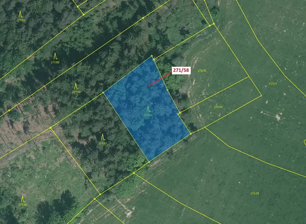 Lesní pozemek o výměře 2102 m2, parcelní číslo 271/58, podíl 1/1, katastrální území Milavče, obec Milavče, obec s rozšířenou působností Domažlice, okres Domažlice, Plzeňský kraj. Po těžbě.