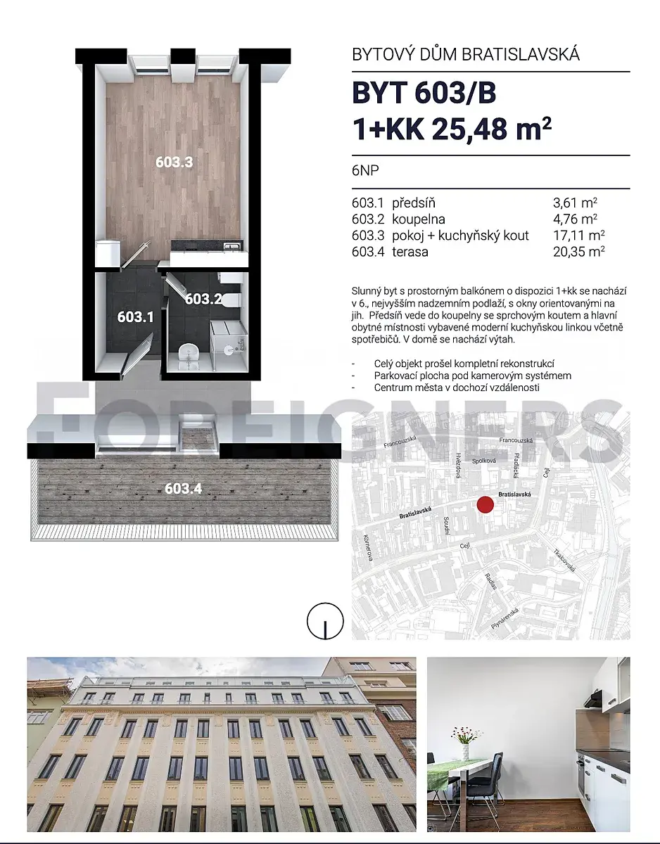 Fotografie jsou pouze ilustrativní. Byt je nevybavený, k dispozici je pouze kuchyňská linka, koupelna a terasa o velikosti 20 m².