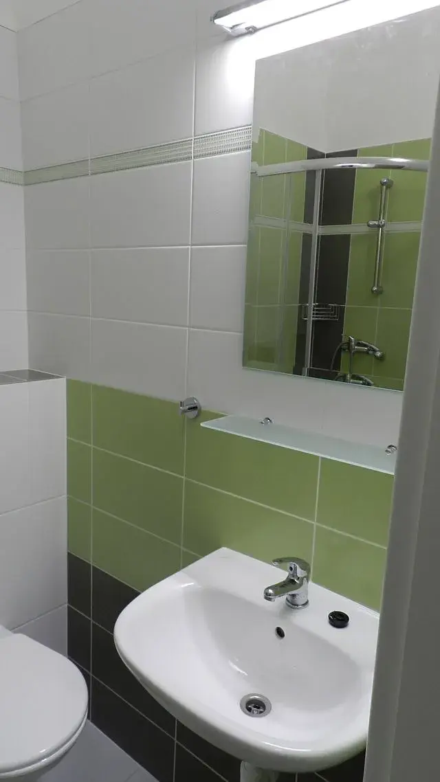 Jeden pokoj má kuchyňský kout s plně vybavenou kuchyňskou linkou- lednice, el.trouba, el.sklokeramická deska, myčka nádobí, digestoř.