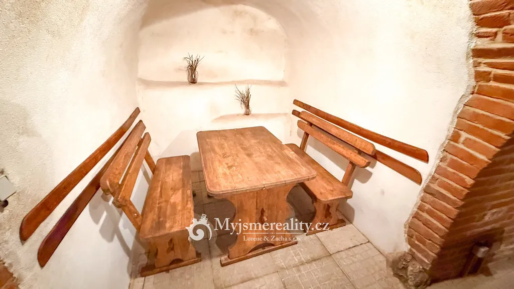 Dominantou celé nemovitosti je impozantní sklepní prostor o výměře 174 m², který nabízí velkorysé zázemí pro degustace, společenské akce, rodinné oslavy či firemní setkání. Prostor je doplněn vinárnou a vinotékou, které podtrhují charakter této výjimečné nemovitosti.