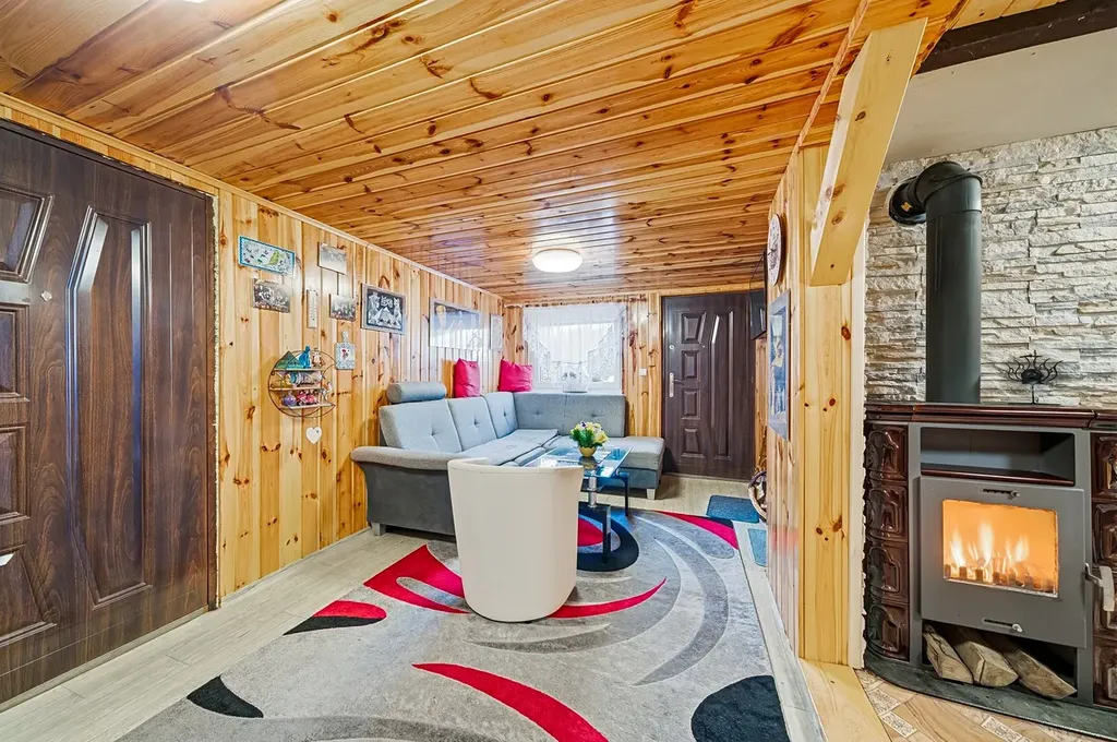 Topení zajišťují krbová kamna o výkonu 7 kw.